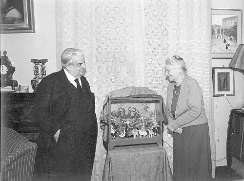 Ceccarius e la moglie Lavinia con lo storico presepe di famiglia