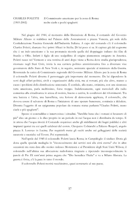 CHARLES POLETTI Il Commissario americano per la zona di Roma: